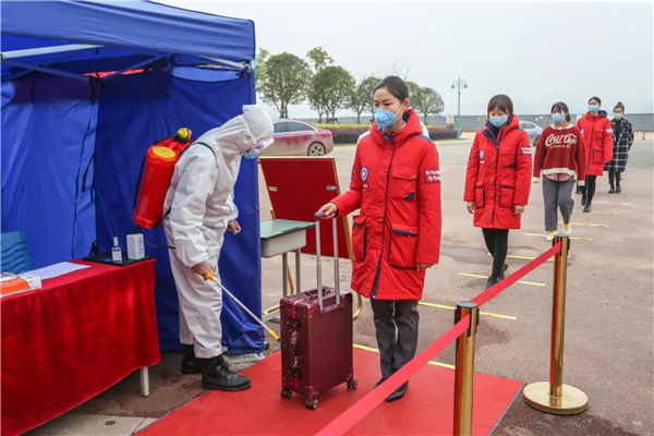 返校學(xué)生進入“入校專用通道消毒區(qū)”后,消毒工作組對返校學(xué)生腳部和行李進行消毒后,學(xué)生進入“紅外線體溫檢測區(qū)”。
