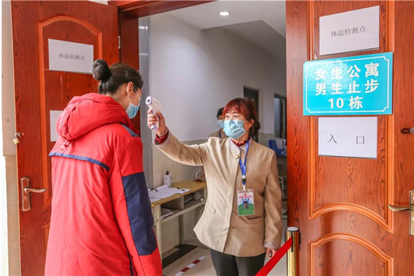 各個宿舍大門分為入口和出口兩個專用通道,師生在進入宿舍大樓前,需佩戴好口罩,有序在入口處“測溫專用通道”前排隊,前后相鄰兩人間隔1米以上。對師生進行體溫檢測,確保師生檢測體溫正常,并登記進入者的各項信息。