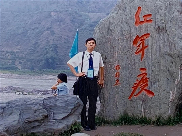 2004年,華西都市報記者辜英智在“紅軍強(qiáng)度大渡河”處采訪