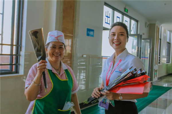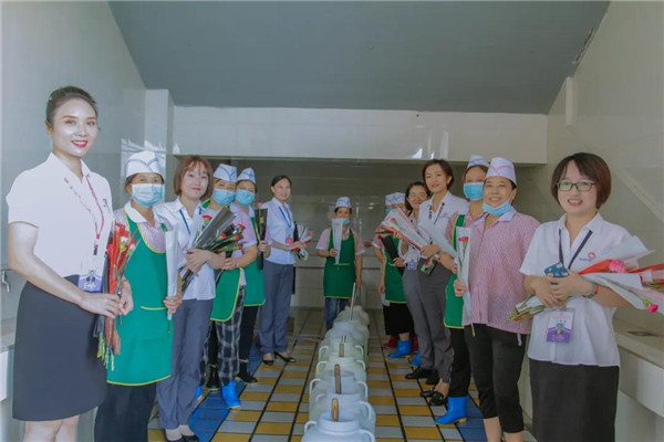老師們接過鮮花,走過長(zhǎng)長(zhǎng)的紅毯,滿臉笑容燦爛。一束束鮮花,代表著學(xué)院對(duì)全體教職工們教師節(jié)的祝愿,傳遞的是學(xué)院對(duì)教職工們美好的祝福。同時(shí),學(xué)院工會(huì)還在格?;恰ⅧP凰樓外設(shè)立了鮮花發(fā)放點(diǎn),并走進(jìn)食堂、宿管中心、門衛(wèi)室,為食堂師傅、宿管阿姨、保安師傅送上節(jié)日祝福。