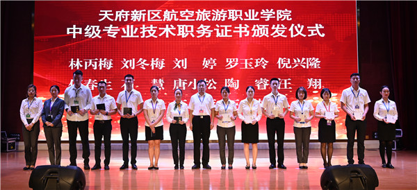 2020年9月18日下午,學(xué)院組織了2020年教師專業(yè)技術(shù)職務(wù)任職資格及聘任儀式,東星航空教育集團董事長、學(xué)院總督學(xué)辜英智,天府新區(qū)航空旅游職業(yè)學(xué)院院長劉存緒教授,黨委書記、省政府派駐督導(dǎo)專員王元瓏教授,副院長唐健禾教授,副院長魏春霖副教授、副院長趙鋼教授等院領(lǐng)導(dǎo)出席會議。全院教職工參加會議。會議由唐健禾教授主持。
