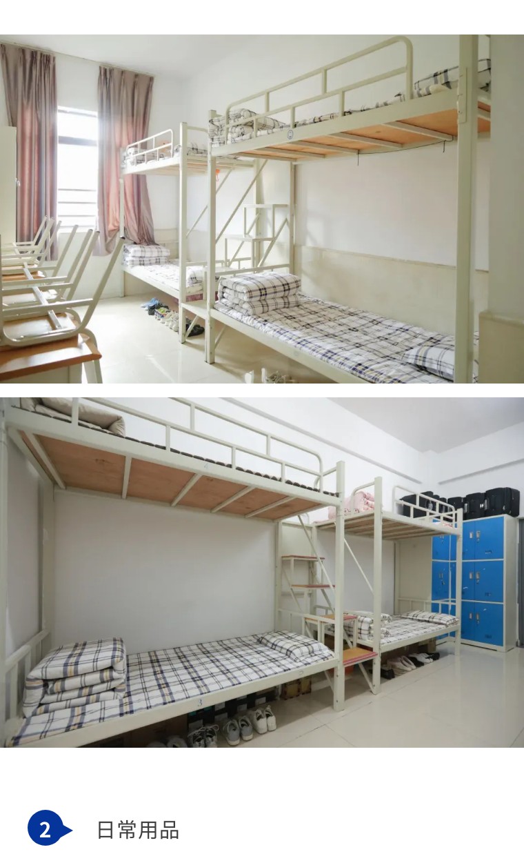 2.學(xué)校會(huì)統(tǒng)一發(fā)放床單、被子、枕頭等床上用品,方便新生開(kāi)學(xué)時(shí)行李從簡(jiǎn)。