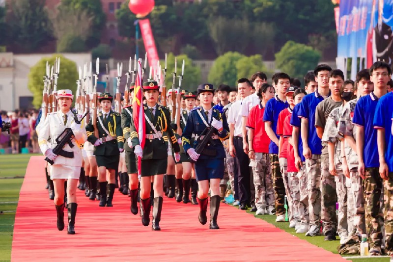 學(xué)生們以標(biāo)準(zhǔn)的分列式和整齊的步伐,展現(xiàn)了嚴(yán)格訓(xùn)練下的優(yōu)秀紀(jì)律和頑強意志,贏得了全場熱烈掌聲。