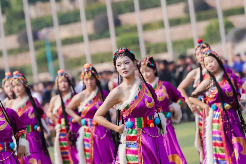 伴隨著悠揚的藏族音樂,舞者們身著絢麗的民族服飾,輕盈地踏著節(jié)奏,仿佛將觀眾帶入了青藏高原的遼闊天地。她們的動作時而柔美,時而鏗鏘,展現(xiàn)了藏族人民聚在一起時的歡樂與豪情。舞臺上的色彩與韻律交織,歡快的氣氛瞬間感染了全場,觀眾仿佛也被這歡樂的場景所感染,心隨舞動。