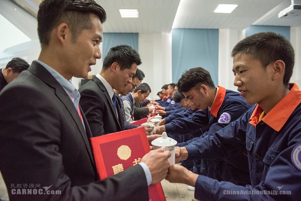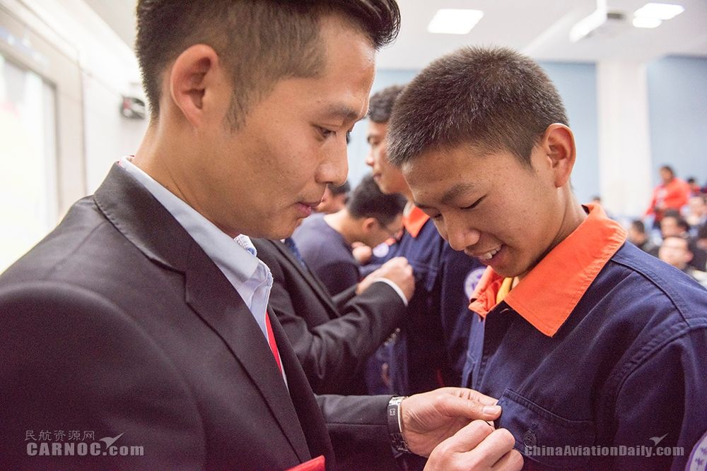 交流會上,轄區(qū)駐場單位空港維修、海技、川航、昆航、紅土等各航司受邀機務師傅與在校飛機機電維修專業(yè)學員舉辦了以師帶徒教學模式的拜師儀式。通過拜師儀式,在今后的學習和實踐中傳承民航工匠精神。
