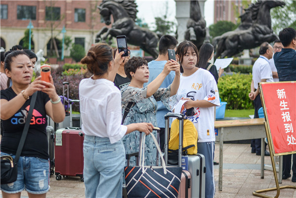 ——已有百余名來自山西、江蘇等省市的新生和家長(zhǎng)早已等候在學(xué)院瑞麗廣場(chǎng)……