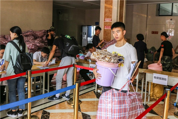 在物資領(lǐng)取處,劉存緒一行關(guān)心了解了新生物資領(lǐng)取情況。