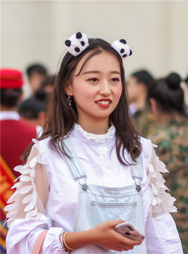 鏡頭三、在今天的新生報(bào)到中,最后兩名來到學(xué)校報(bào)到的是湖南新生何暢和山西新生趙苗菲,兩人走在紅毯上,“熊貓”頭飾好拉風(fēng),美女新生頭戴熊貓配飾走紅毯的圖片惹爆校園。據(jù)何暢同學(xué)介紹,四川是大熊貓的故鄉(xiāng),從今天開始,她倆便是“四川人”了,佩戴熊貓頭飾,也是隨鄉(xiāng)入俗,希望在今后的學(xué)習(xí)生活中,與四川的同學(xué)們成為好朋友吧!