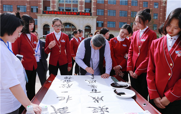 彭山區(qū)政協(xié)副主席王娜、彭山區(qū)教育局副局長曾明華、仁壽縣政協(xié)辦公室主任李彬、仁壽縣政協(xié)文史宣聯(lián)委副主任肖碧容、彭祖書畫院院長游洪全、仁壽書畫院院長李覺悟等領(lǐng)導(dǎo)及書法藝術(shù)家10余人參加了此次活動,四川東星航空教育集團董事長辜英智、副董事長萬永福,天府新區(qū)航空旅游職業(yè)學(xué)院院長劉存緒、副院長唐健禾、何明友、工會主席吳蜀等院領(lǐng)導(dǎo)出席了本次活動。