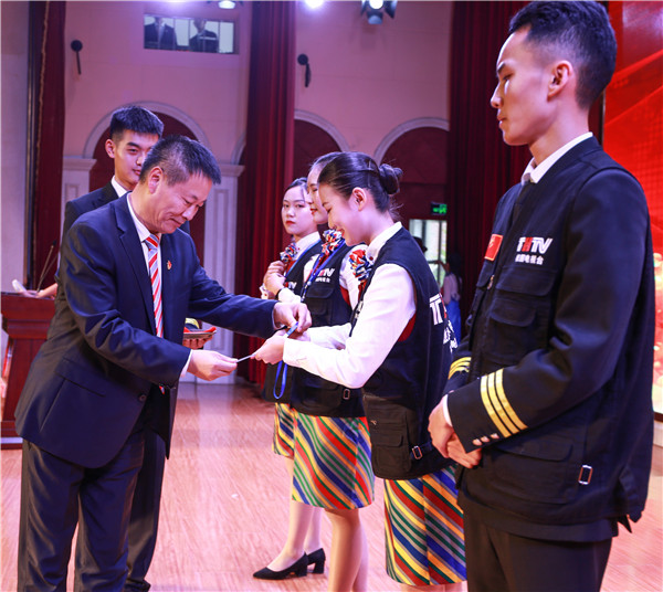 緊接著,學(xué)院院長(zhǎng)劉存緒教授、學(xué)院宣傳部部長(zhǎng)陳勇,學(xué)院董事長(zhǎng)助理劉盛暉,學(xué)院黨政辦主任冷靜,高職學(xué)院院長(zhǎng)王志鴻,中職學(xué)校負(fù)責(zé)人魏曦,高職部教務(wù)處副處長(zhǎng)陳剛,中職學(xué)校黨支部負(fù)責(zé)人陳亮,學(xué)院團(tuán)委負(fù)責(zé)人王寶鵬,學(xué)院新聞辦科長(zhǎng)石慧等領(lǐng)導(dǎo)分別上臺(tái)為校園電視臺(tái)100多名同學(xué)授發(fā)工作牌。