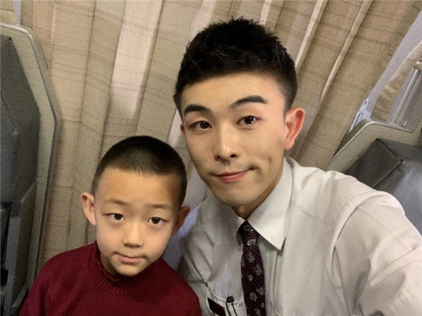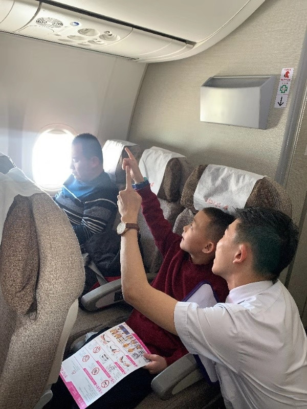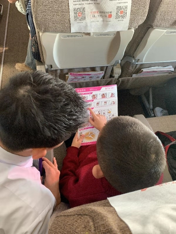 他,叫李奕灼,這是他第二次來上海,他告訴我他很喜歡上海,這次回去過完年之后還想再來上海,乘務(wù)員看他仔細(xì)閱讀著我們的安全須知卡,好奇的他,問了很多問題,他說下次還想坐我們的飛機(jī)去上海,去他一直想去的迪士尼樂園。