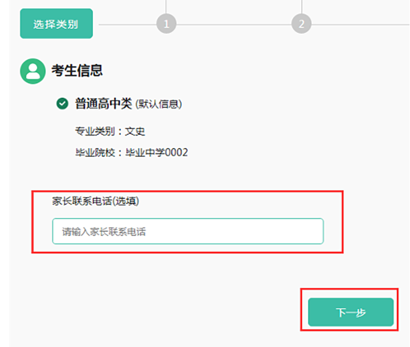 使用新密碼重新登錄,進(jìn)行電話(huà)填報(bào),點(diǎn)擊“下一步”。